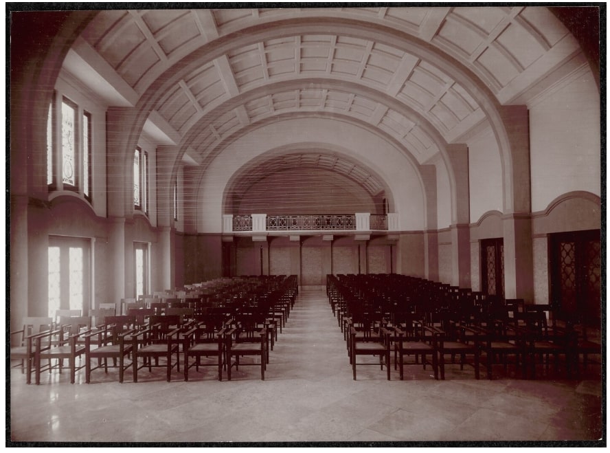 Terlihat jelas bahwa seluruh bangunan dibangun dengan dana dari para dermawan. Sebagai contoh, auditorium memiliki jendela kaca patri yang menggambarkan lambang Batavia dan Surabaya. Sementara sebagian dindingnya ditutupi dengan dekorasi dan ubin.