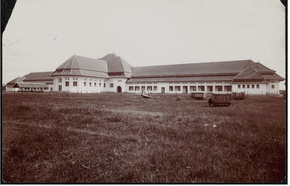Gedung ini terletak di Karang Menjangan (ada juga yang menyebut di Pacar-Keling) di ujung jalan Viaduct di Surabaya; di sana, sebidang tanah yang sangat luas telah disediakan untuk bangunan N.I.A.S., yang akan dibangun pada waktunya. Awalnya situs ini berupa rawa dengan air asin dan kemudian ditinggikan sedikit dengan pasir dan puing-puing.
