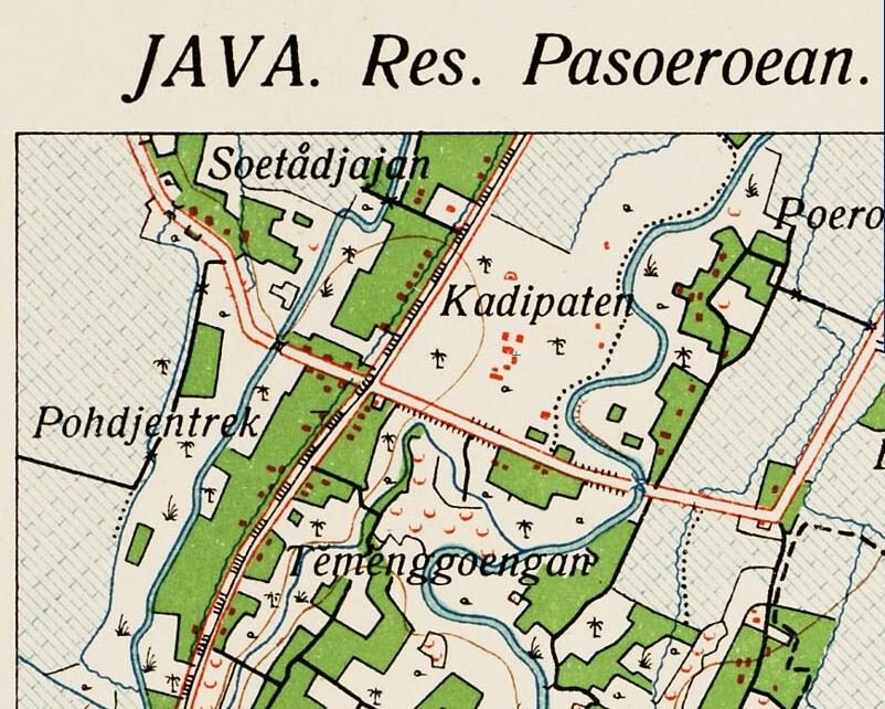 Desa Kadipaten di Kebon Agung Kota Pasuruan, tempat lokasi makam “Astana Kadipaten” pada peta 1912.