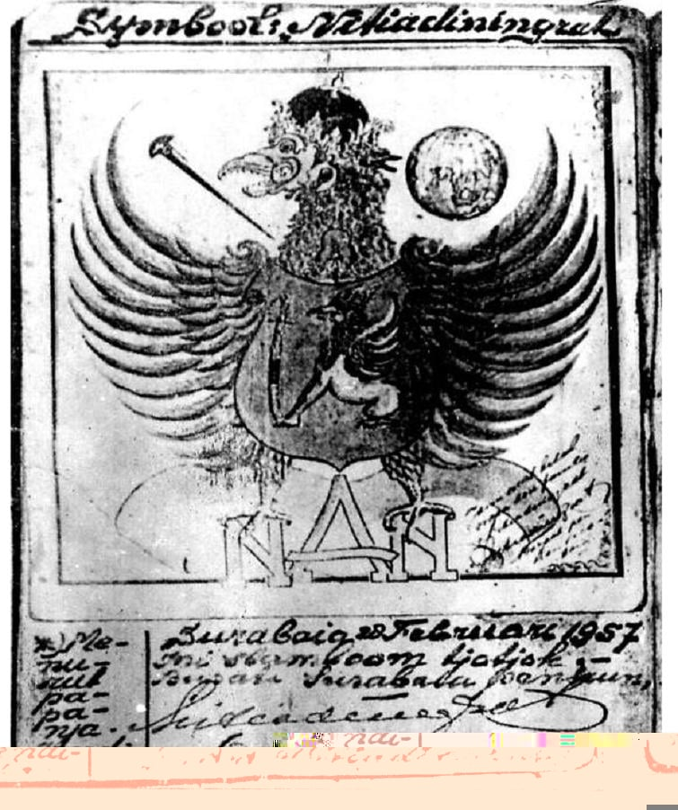 Lambang Trah Keturunan Kyai Adipati Nitiadiningrat I, Bupati Pasuruan Th1751-1799. Lahir 1740, dari pernikahan Paku Buwana II Kartosuro – Mataram dengan Raden Ayu Srie Berie Budjang, binti Pangeran Kertokusumo / Pangeran Bodrokusumo di Drajat-Sidayu Lawas. Ini adalah masih keturunan ketujuh (gantung siwur) Raden Rahmat / Sunan Ampel. Dalam riwayat R Ayu Srie Berie Budjang sebagai isteri Pangrembe diparingaken/dihadiahkan kepada Kyai Tumenggung Wongsonegoro Bupati VOC di Pasuruan, saat itu dalam keadaan mengandung. Dengan syarat boleh dikawin setelah bayi itu lahir; dan bila bayi lahir laki-laki akan menggantikan menjadi Bupati pasuruan. Maka Lahirlah Raden Groedo ( Garudo) / R Bagus Ingabei Soemodrono / Kyai Adipati Nitiadiningrat I, Bupati Pasuruan tsb. Dan Lambang Pemerintahan saat itu (seperti nampak pada gambar ) berupa burung garuda, bola dunia, dan paku seperti makna lambang Kasunanan Surakarta adalah :