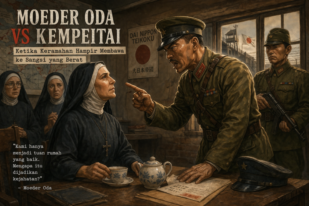 Pagi itu, 11 Juli 1942, suasana di biara Probolinggo seperti biasa. Para suster sedang membersihkan rumah ala Belanda—karena tak punya uang untuk membayar banyak pembantu. Moeder Oda, pemimpin misi yang disegani, duduk di serambi depan bersama Frater Direktur Clemens Tehuis yang sedang membicarakan beberapa hal.