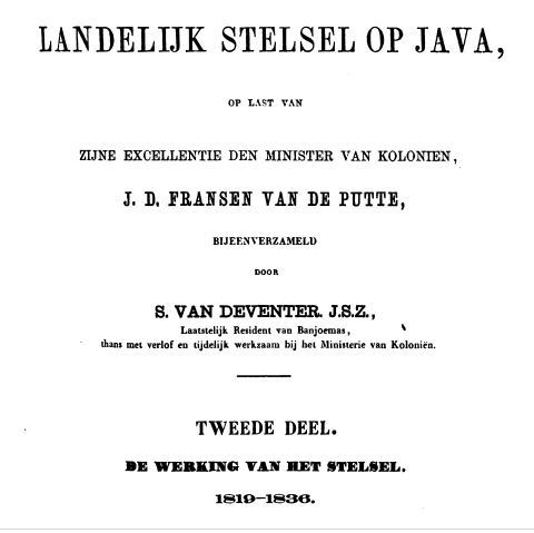 Betapapun irinya orang-orang ini kepadanya, mengingat kebutuhannya yang sedikit, kepuasannya yang cepat, moral dan adat istiadatnya yang baik, dan pengaturan rumah tangganya yang efisien (lihat artikel tentang harta bersama), seolah-olah sebuah kutukan menimpa orang Jawa; mereka tidak pernah dibiarkan damai; mereka dipaksa menjalani evolusi yang suatu hari akan berbalik melawan penjajah, dan kemudian sudah terlambat; kemudian ramalan dalam lagu kutukan Sentot menjadi kenyataan, ramalan yang Anda tahu. Namun, kembali ke sejarah: baik van Soest maupun van Deventer dan Pierson mengklaim bahwa penulis “sebuah pandangan pemerintahan di Hindia Belanda” yang diterbitkan di Kampen pada tahun 1835 dan dari mana mereka juga memperoleh informasi tersebut, adalah Tuan P. Werkus. Namun, pernyataan ini telah dibantah secara memadai oleh de Bosch Kemper dalam “Sejarah Belanda Sesudah 1830.” Dalam apa yang disebut karya Merkus.