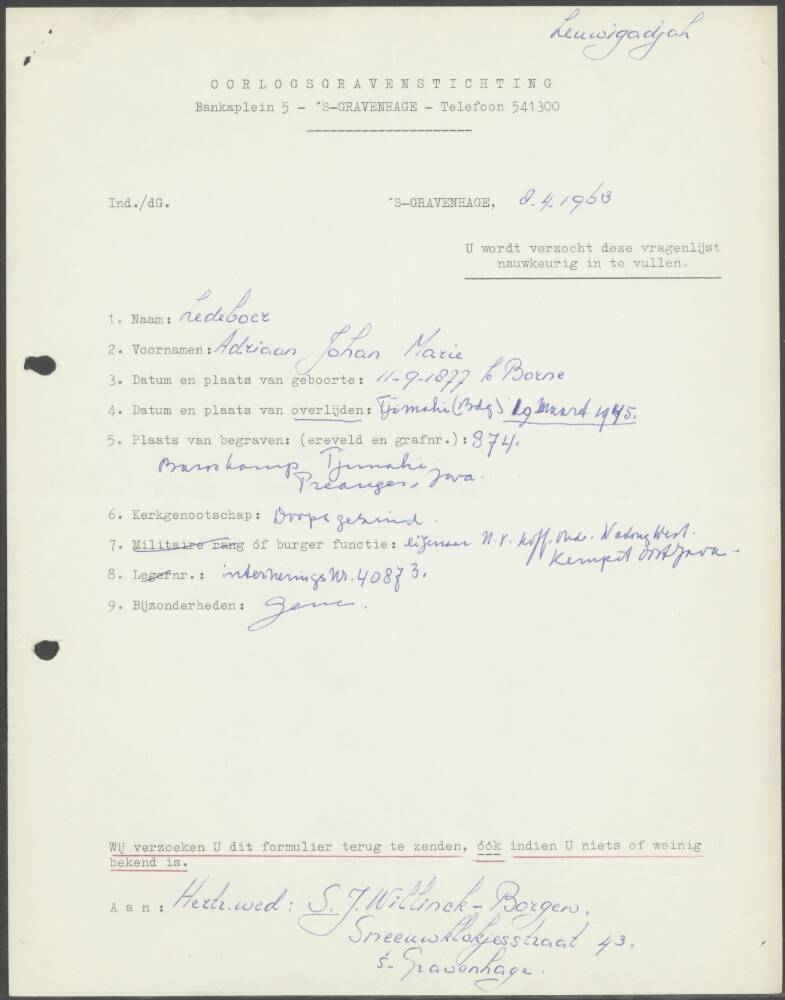 Adriaan Johan Marie, lahir pada 11 September 1877 di Borne. Ia menikah dengan Sophia Julia Borgen sekitar tahun 1925. Sophia lahir pada 11 April 1900 di Makassar dan merupakan putri dari Anthonius Charles Johan Borgen dan Dora Eleonoor de Bode. Pasangan ini tidak mempunyai anak. Pada saat buku ini diterbitkan, Sophia Julia masih tinggal di Hindia Belanda.