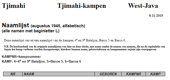 Kamp tersebut dikelilingi oleh pagar bambu, oleh karena itu dinamakan juga “Kamp Bambu (Bamboo Camp)”. Komandan Kamp Jepang : Kunimoto (Mei 1945 hingga Agustus 1945).