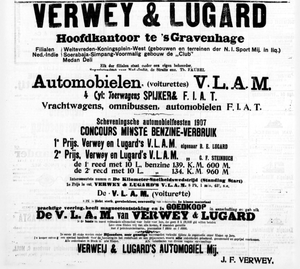 Dalam mempromosikan penjualan mobilnya, perusahaan “Verwey & Lugard” telah melakukan perjalanan dari Surabaya dengan mobil ke Tosari dan pulang kembali dengan sukses. Bisa dikatakan perusahaan inilah yang pertama kali mencapai Tosari dengan mobil di tahun 1907.