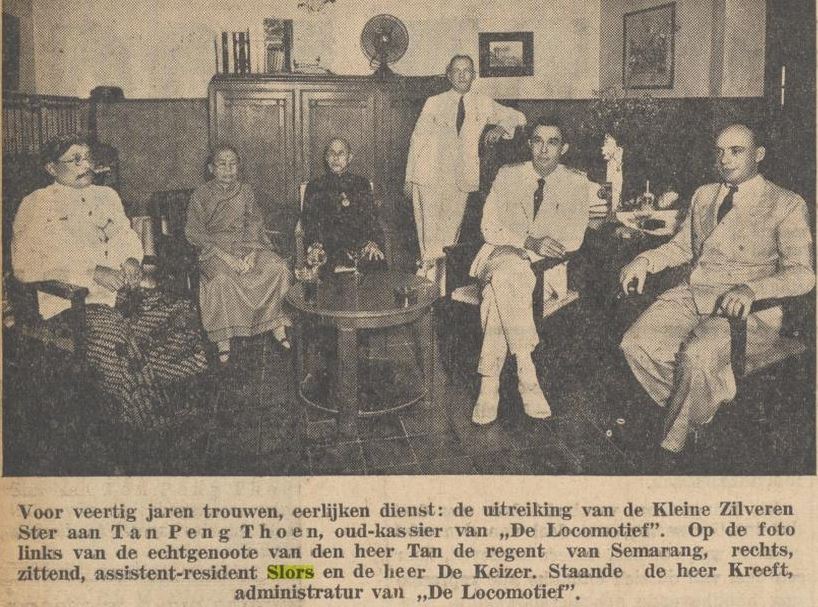 Duduk di tengah berbaju dan sepatu putih. Asisten Residen Slors di Semarang pada tahun 1937.