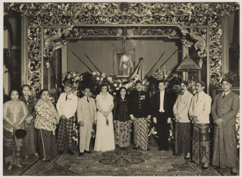 Dari kiri ke kanan: Tiga orang istri para bupati, wakil Sultan Yogyakarta, Pangeran Hadiwidjojo dari keraton Solo, Ny. Van Hartingsvelt, istri bupati Bangkalan, bupati Bangkalan, W. van Hartingsvelt (Residen Madura), Raden Adipati Ario Soeriowinoto (Bupati Surabaya), Raden Toemenggoeng Ario Samadikoen (Bupati Sumenep), dan Raden Adipati Ario Abdul Azis (Bupati Pamekasan). Pada acara 30 tahun pengabdian sebagai PNS Bupati Bangkalan R. A. A. Tjakradiningrat tahun 1936.. Sumber : KITLV